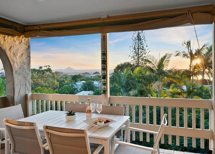El Apartamento Penthouse Sunsets - Stylish Noosa Heads Escape With Breathtaking Views está situado a unos minutos a pie del Parque Lions y tiene vistas a las montañas. Este apartamento dispone de una terraza y se encuentra a 450 m de la Calle Hastings.